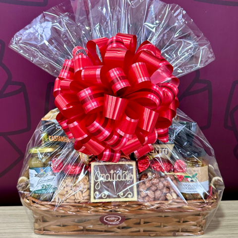 O presente seguirá embalado em celofane e decorado com laço.