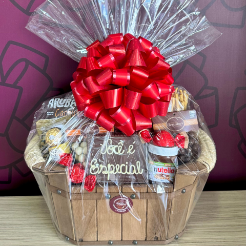 O presente seguirá embalado em celofane e decorado com laço.