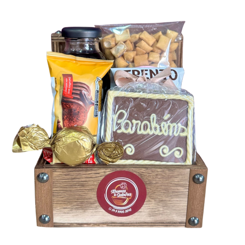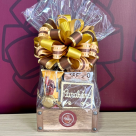 O presente seguirá embalado em celofane e decorado com laço.