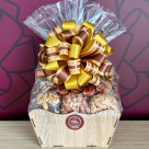 O presente seguirá embalado em celofane e decorado com laço.