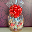O presente seguirá embalado em celofane e decorado com laço.