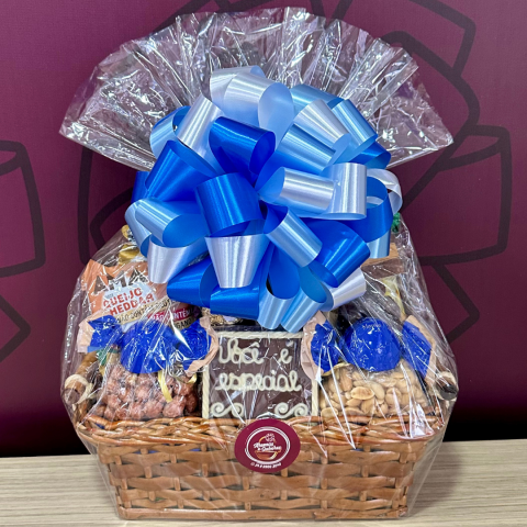 O presente seguirá embalado em celofane e decorado com laço.