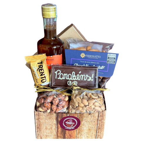 O presente seguirá embalado em celofane e decorado com laço.